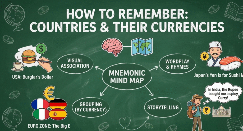 देशों और उनकी मुद्राओं(country and their currencies) को याद रखने के प्रभावी तरीके